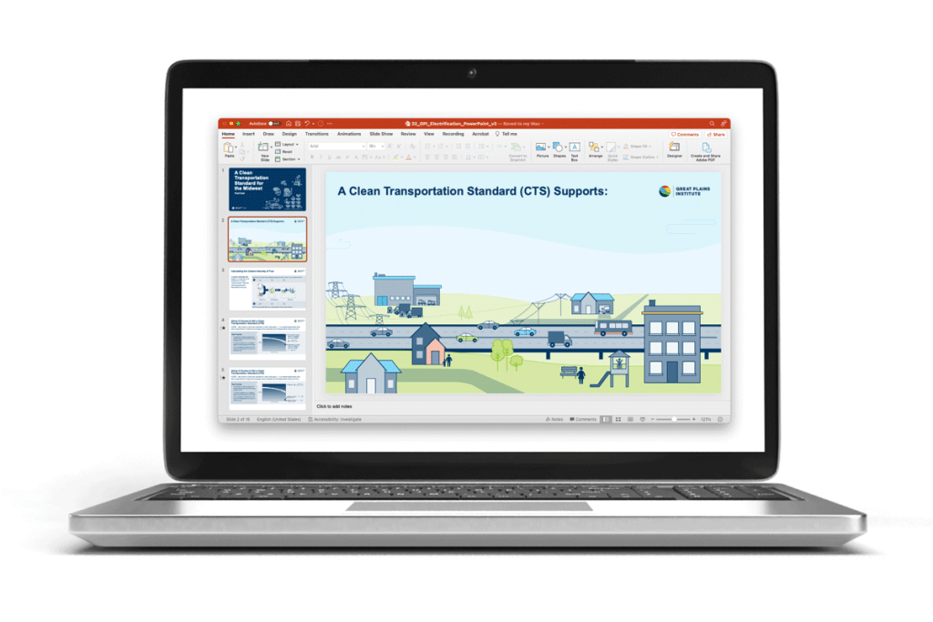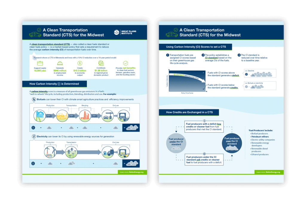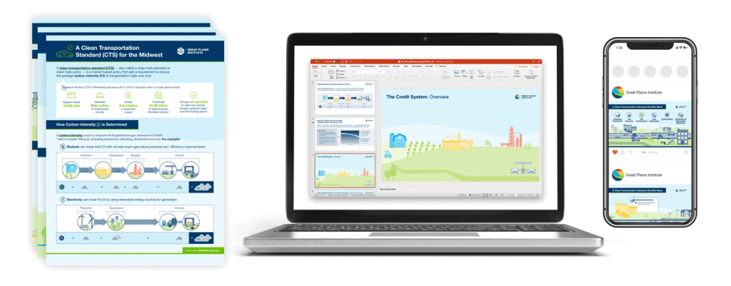 To communicate to farmers who grow grain for biofuels, we focused on potential cost savings, increased efficiency, and long-term benefits for farmers. Because there are nuances in what a Clean Fuels Standard (CFS) would look like state-to-state, all text in the design deliverables (presentation Powerpoints for meetings) was left editable so our client could make adaptations when sharing this resource across the Midwest.