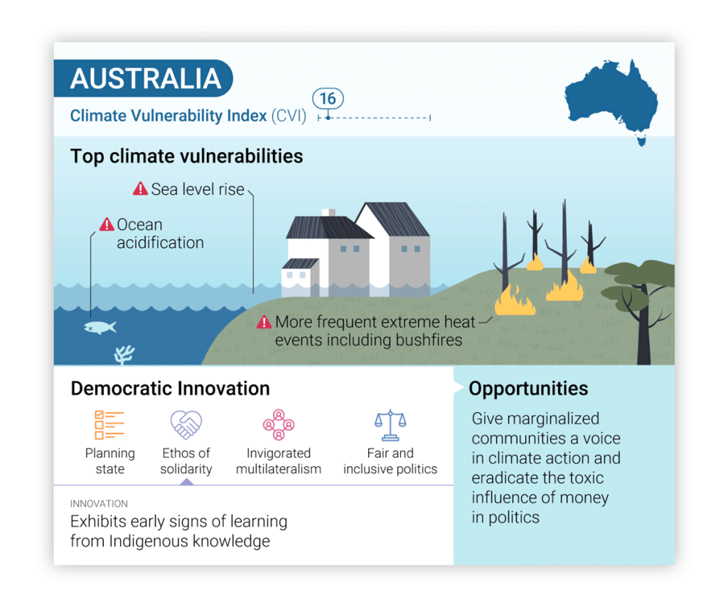 The series of infographics contain details on democratic innovation across 10 countries from the Asia and Pacific region and the audience needs both country-specific details as well as the ability to compare countries to one another. Our templated design facilitates this comparison and is structured so that data unavailable in some countries (due to the nuance of the information) doesn’t appear as a missing hole.