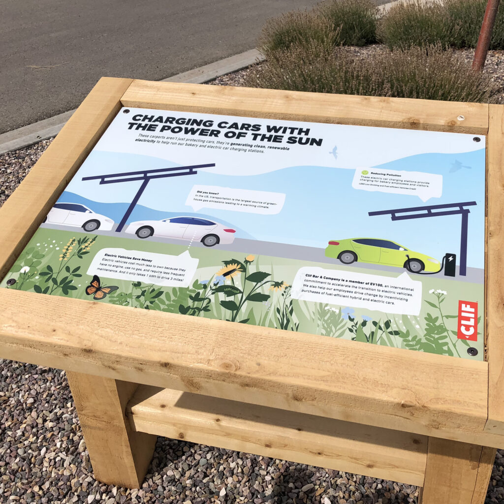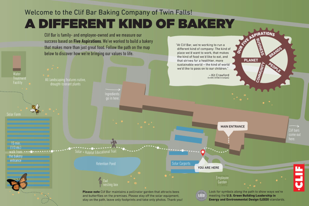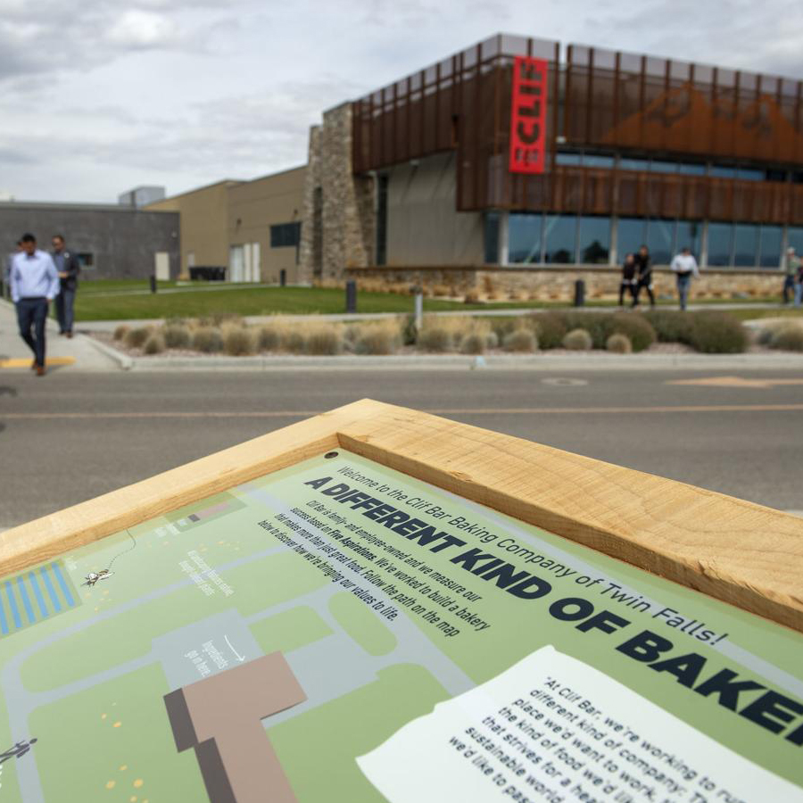 We designed a series of nine interpretive signs to guide visitors to Clif Bar’s solar farm at its Twin Falls, Idaho bakery.