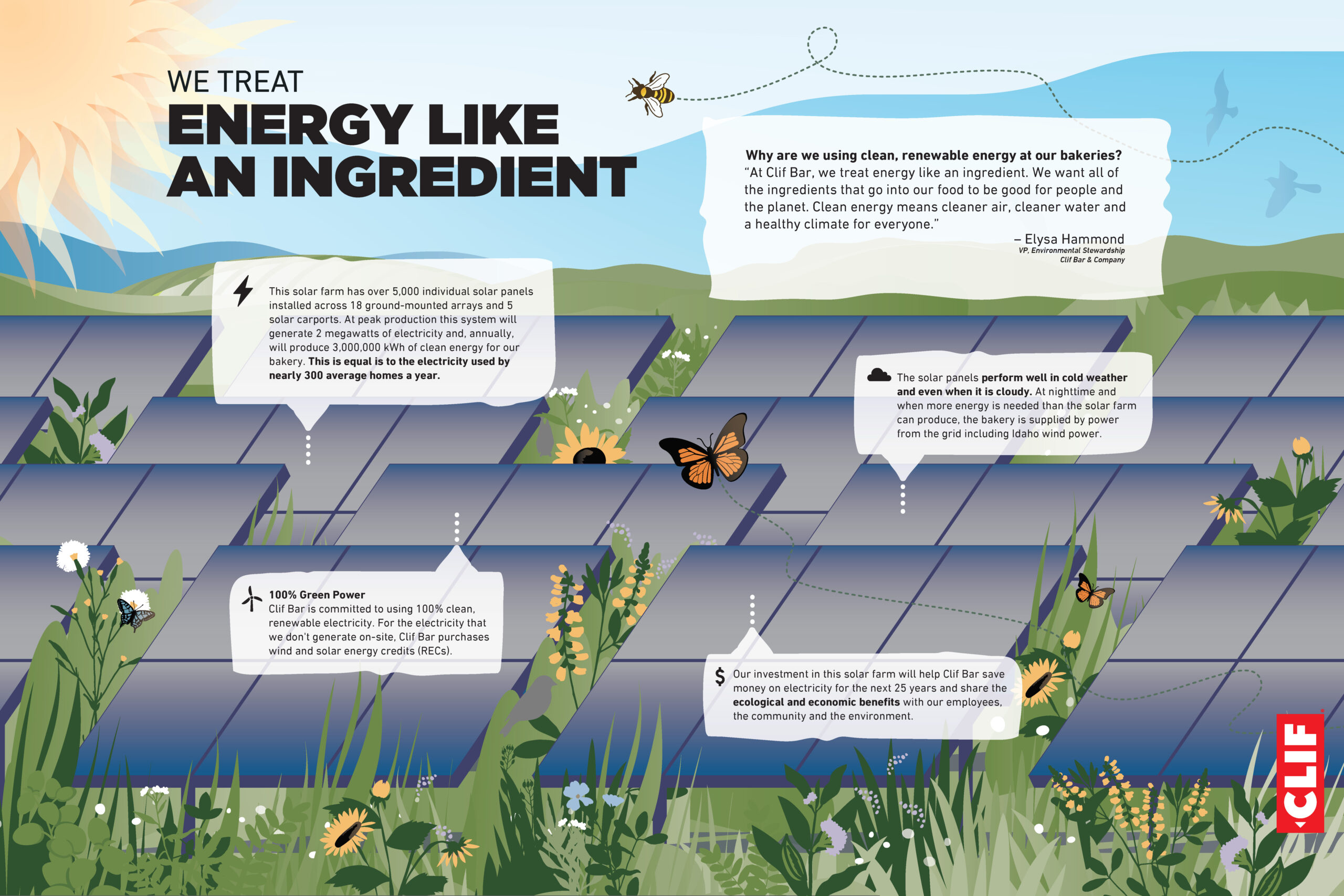 In collaboration with Clif Bar and Clif Family, we created communication tools that bring their sustainability commitments to life—from renewable energy to pollinator-friendly agriculture. Each project connects audiences to the tangible impact of their values, using design to tell stories that are grounded in place, purpose, and the power of small details to inspire change.